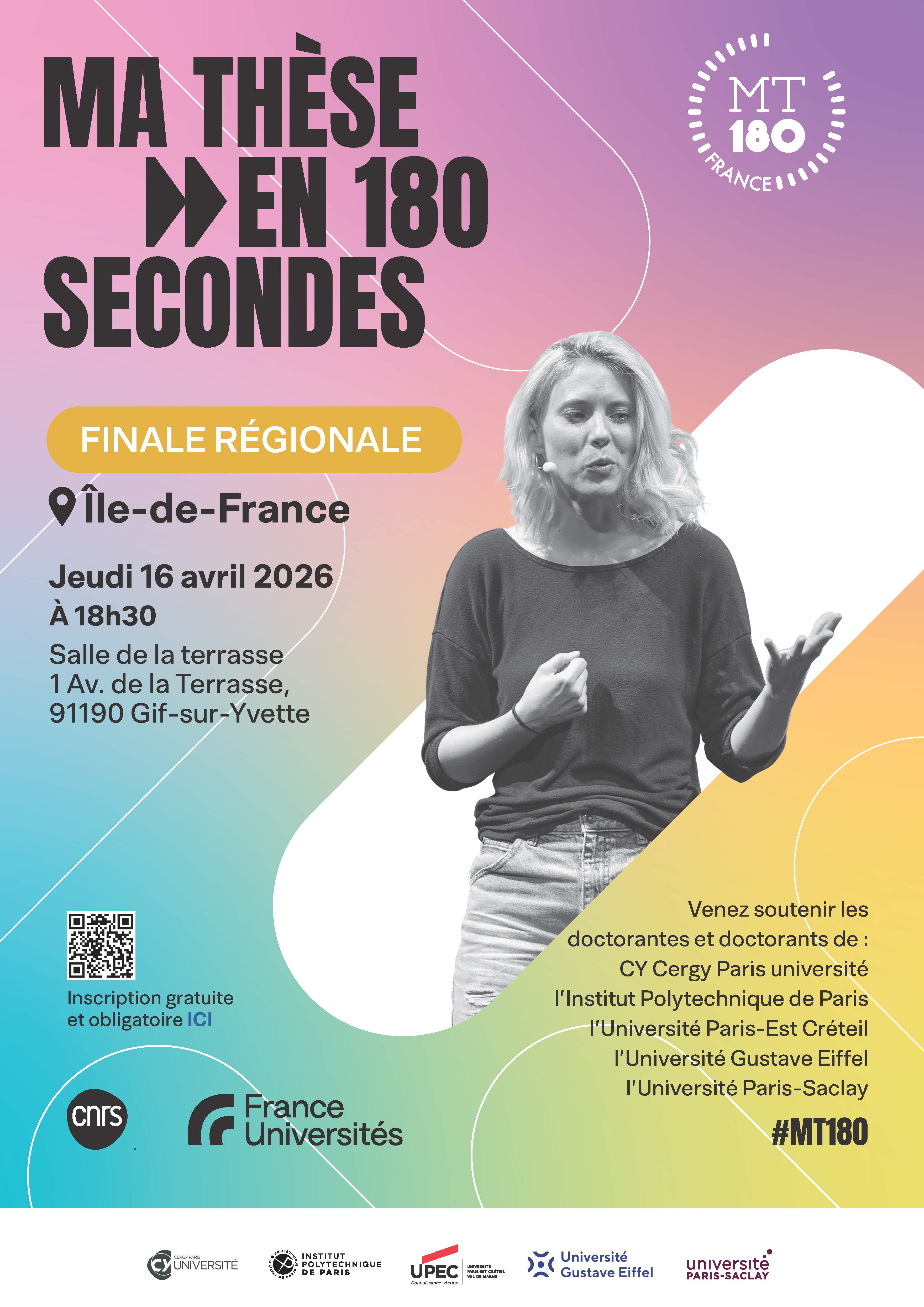 * il y a deux finales régionales MT180S en île de France : l'une pour les universités intra-muros (PSL, USPC, Sorbonne Universités, etc...) ; l'une pour les finales de la couronne (la nôtre)